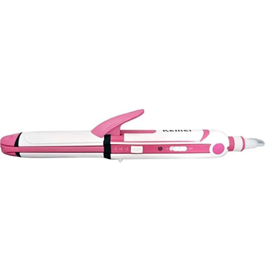 Box includes: 1 x Kemei KM-1291 3 in 1 hair straightener, crimpler, and curler, warranty card .